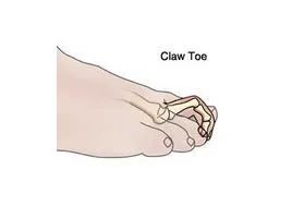 爪形趾也可称为仰趾畸形,它是指跖趾关节过伸,近侧指间关节过屈的一种畸形,从侧面看像是一个倒"V"型。
