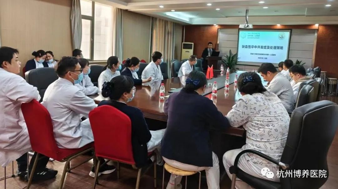 本次签约活动过后,杭州市一医院城北院区的各位专家,还为我院病区的几位患者安排了会诊。张灏主任则在会议室为我院临床一线的医务人员带来了关于《缺血性卒中并发症及处理策略》的业务培训,我院临床医务人员受益匪浅。