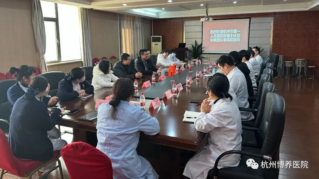 随后,杭州博养医院院长丁炜与张灏主任及各位专家进行了座谈。丁院长表示,杭州博养医院成立至今已经有11年了,一直与上级医院专家保持着紧密的合作,以促进本院的医疗技术和医疗规范,更好地为在院患者提供优质地医疗服务。相信与张灏主任团队的结对共建,一定能给杭州博养医院带来医疗技术和护理质量的提升。关于双向转诊、专家会诊及专家带教培训等方面,丁院长也在随后的议程中与张灏主任进行了深入的交流和讨论,今后杭州市一医院城北院区张主任团队将为杭州博养医院提供会诊支持和专家指导,共同开展临床教学活动。