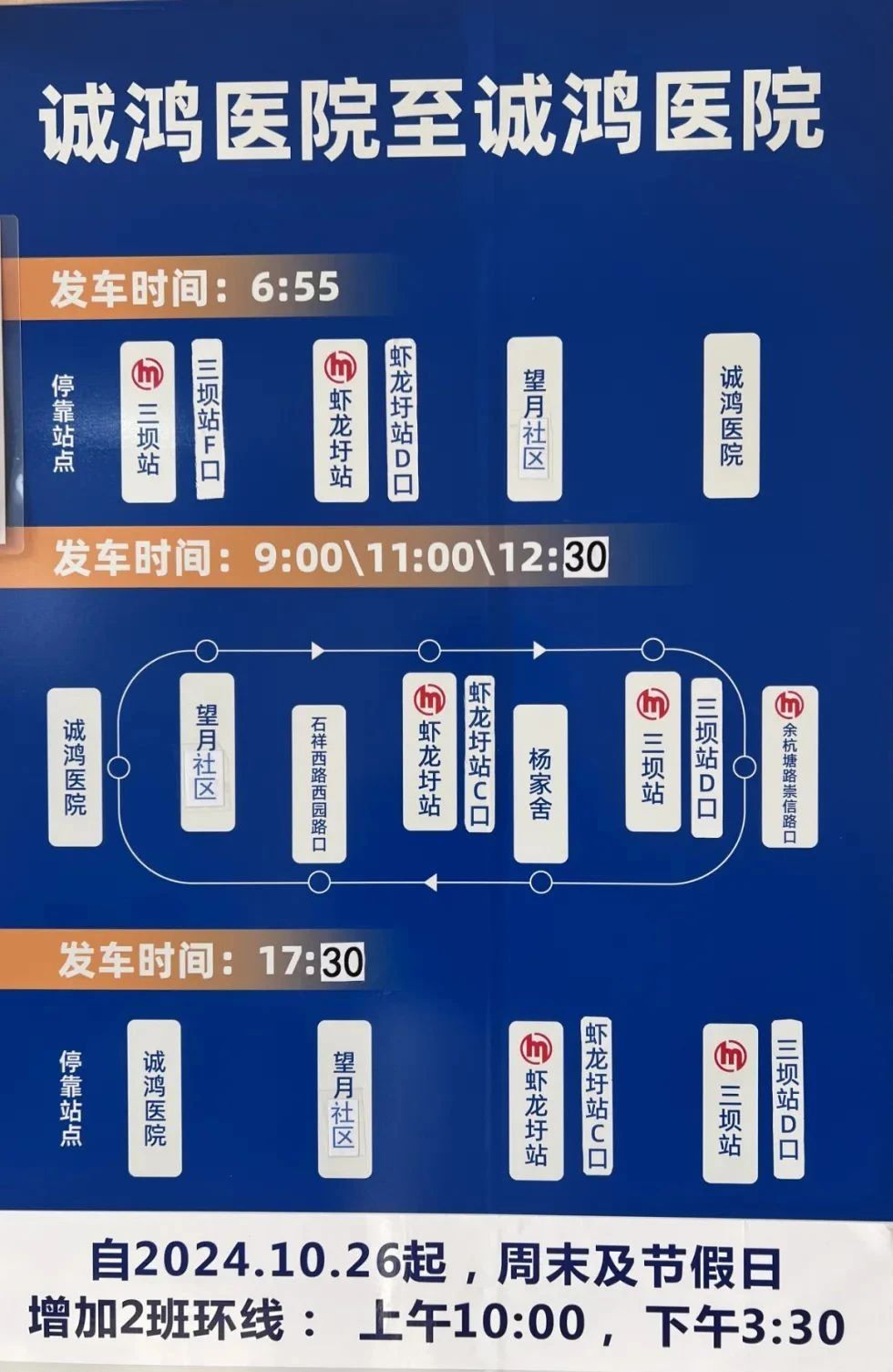 2024年10月1日,杭州诚鸿医院一条新的接驳专线正式开通。